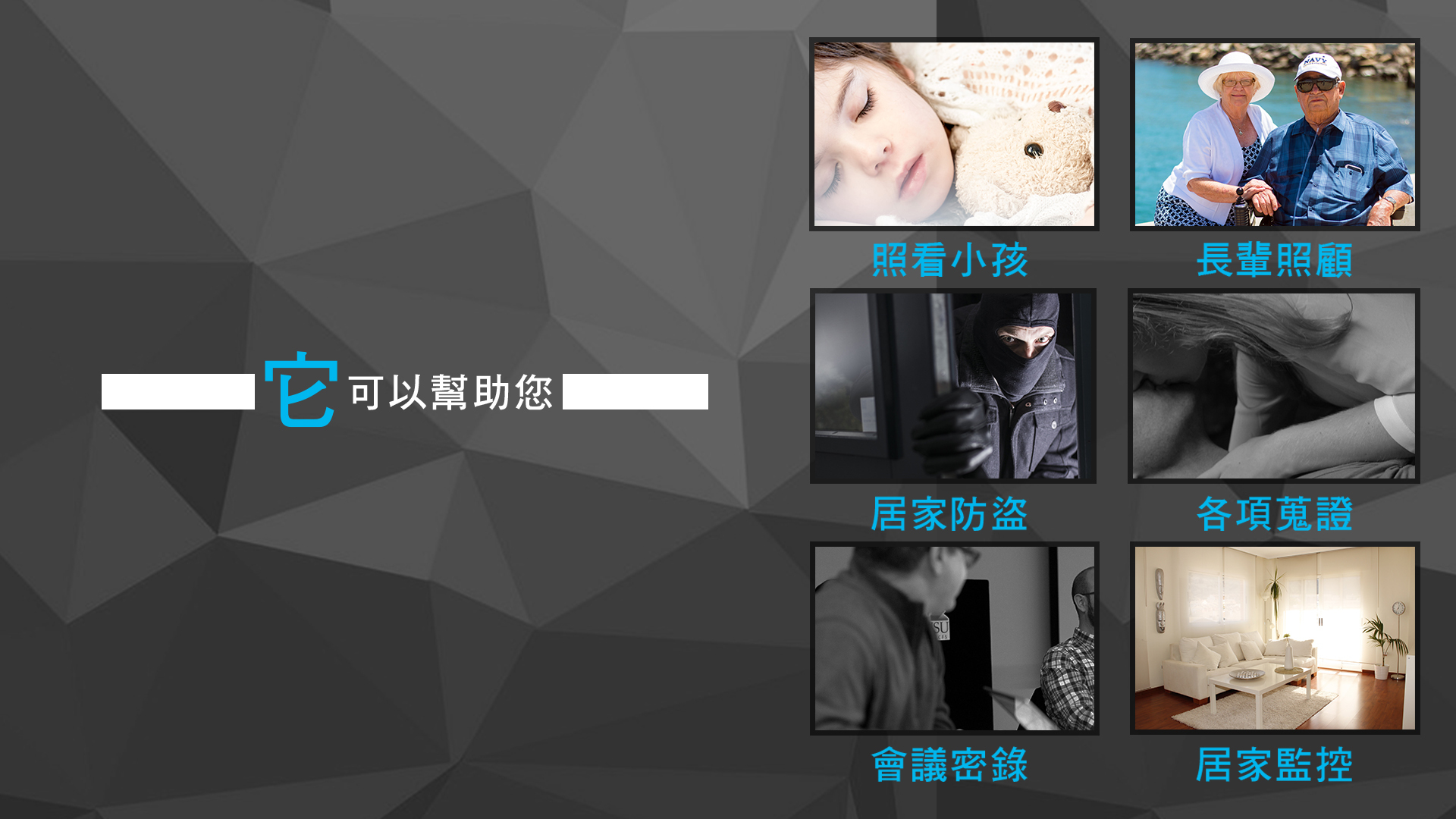 3️⃣照看小孩、長輩、寵物、居家防盜、各項蒐證密錄...