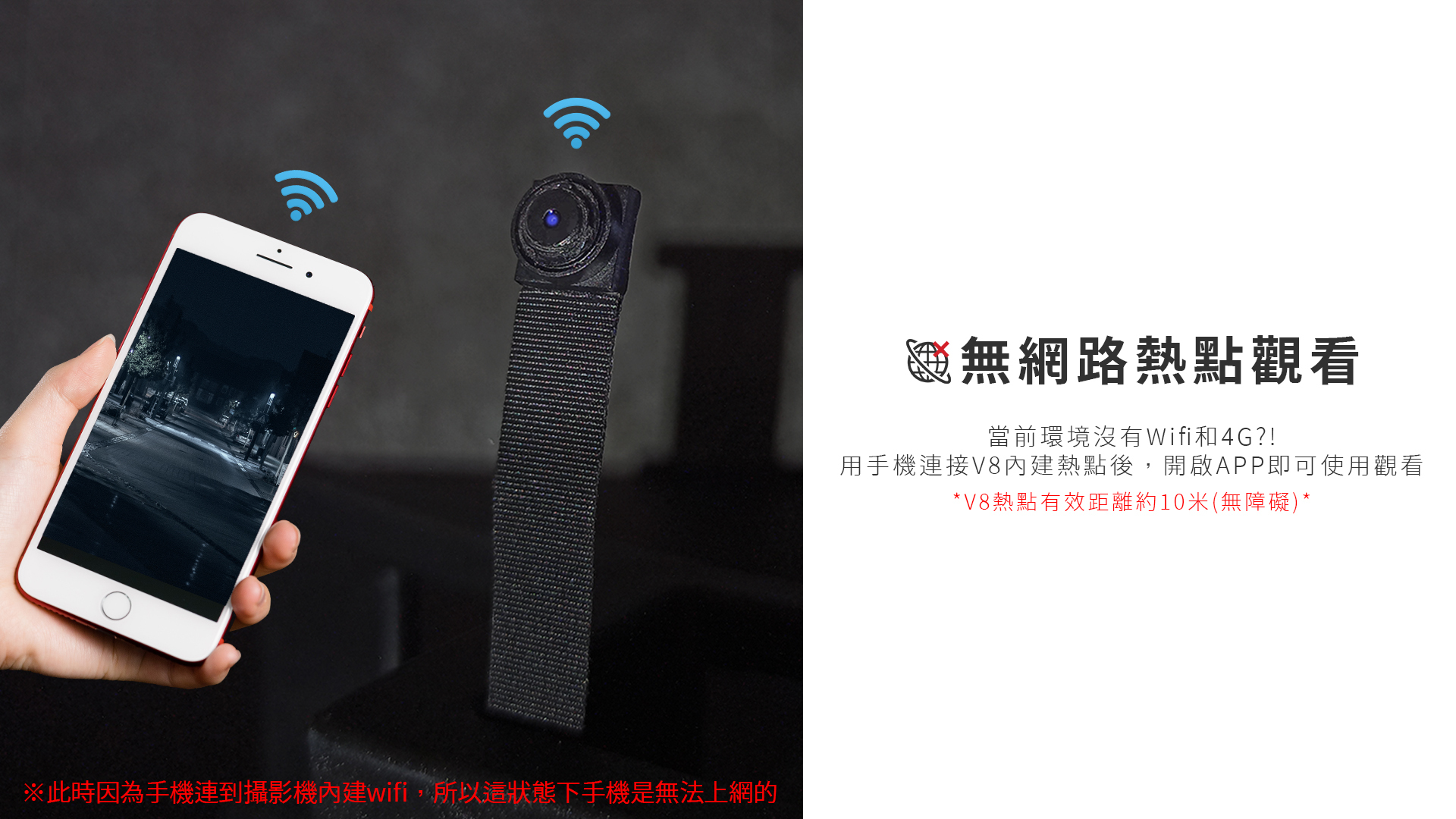 1️⃣攝影機內建熱點wifi,無網路也可以用APP觀看