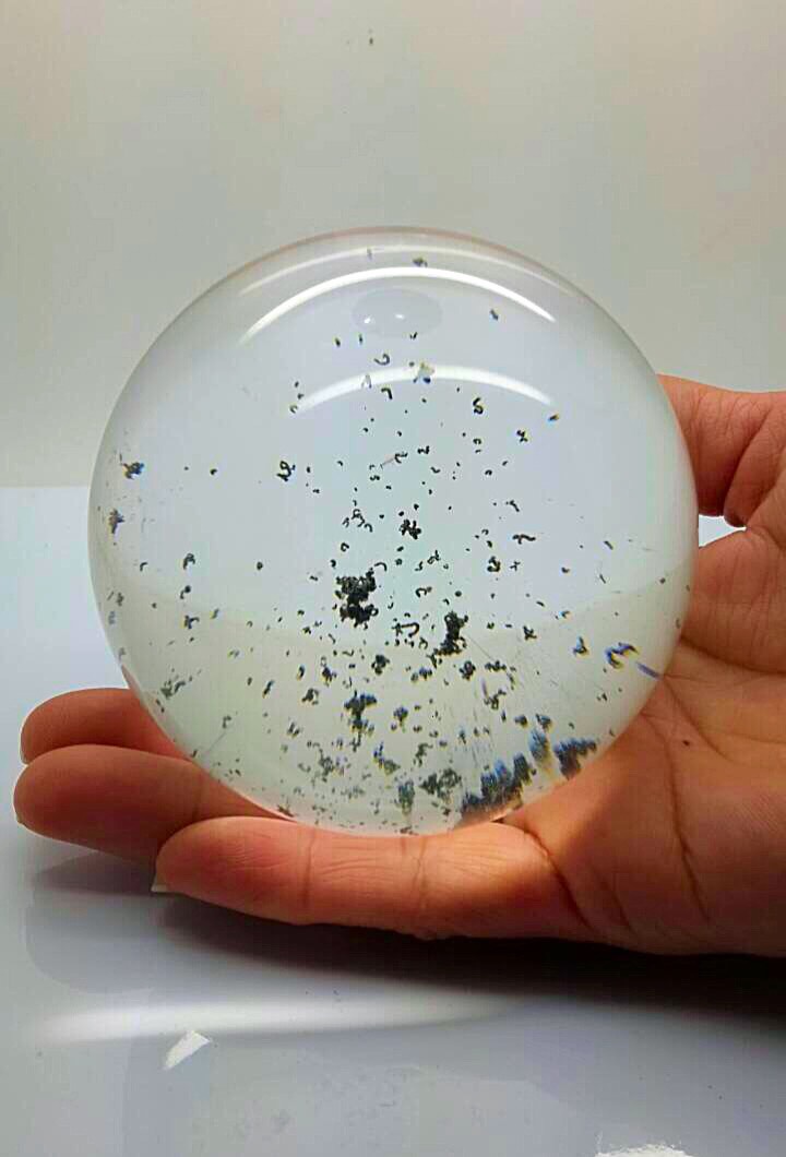 頂級珍藏品~內包綠幽靈水晶球 幾近全美 78mm。 小怪物、出現了,大家天天都在網上看些雜七雜八沒什麼亮點的水晶⋯⋯趁著過年即將到來、也是該誏一些 大、小、怪物水晶出來,向各位好友拜拜年了(^O^)