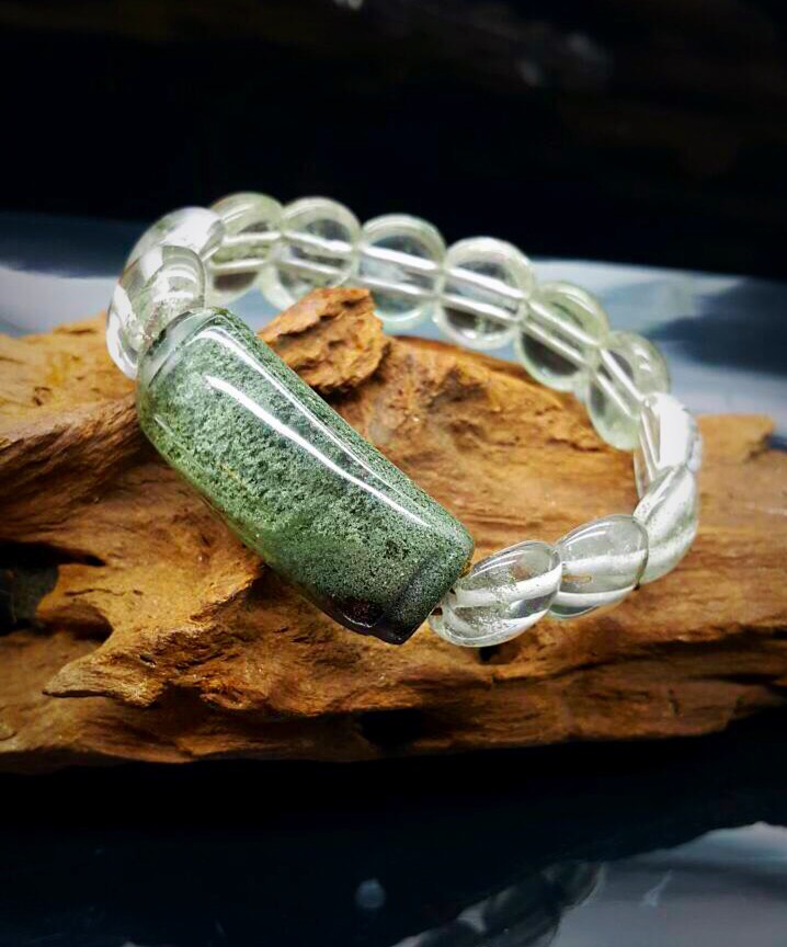 獨一無二~手工特地雕磨 巴西A級天然綠幽靈水晶手墜排。 想把一顆漂亮的綠幽靈美墜,載在手上嗎? 在這次回來的物件,就有這一條~巴西A級天然綠幽靈水晶手墜排。 真佩服雕刻師傅的用心與努力,看到有這様一塊好的綠幽靈原礦後,願意用心去設計怎麼將這塊綠幽靈水晶、以最好的一面承現出來。 綠幽靈也被稱為“鬼佬財神”,原因是它的色彩跟美金很相似,而且更名符其實擁有吸引財富的能力,所以它更是生意人的寵物、能招正財富。 特別手工訂作的~獨一無二、手工特地雕磨 巴西A級天然綠幽靈水晶手墜排。 只有一條、綠幽靈水晶的愛好者、和收藏家,千萬不要錯過這難得的機會喔!