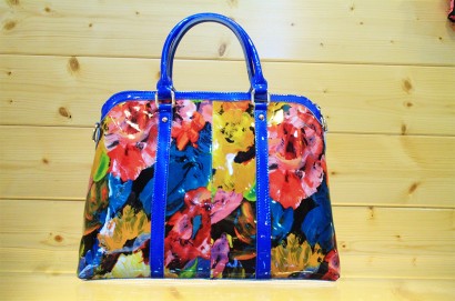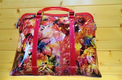 真皮亮面花包
