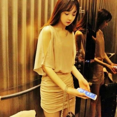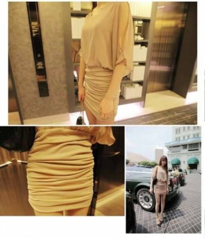 • 蝙蝠袖露摺皺連衣裙ts-418/15