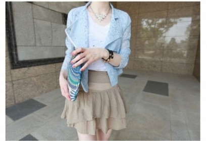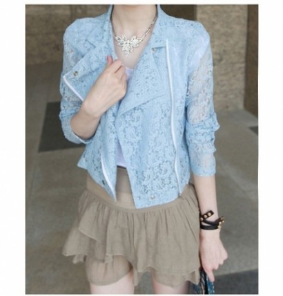 • 蕾絲摟空側拉鍊短外套AAF41213