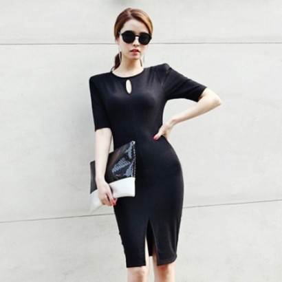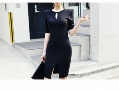 • 開叉摟空短袖連衣裙aaj39012