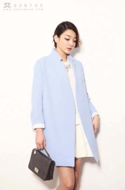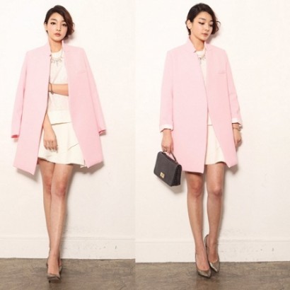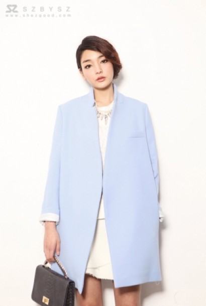 立領西裝中長款大衣K-1215