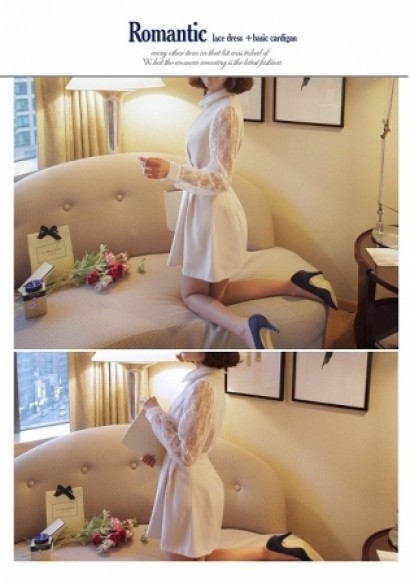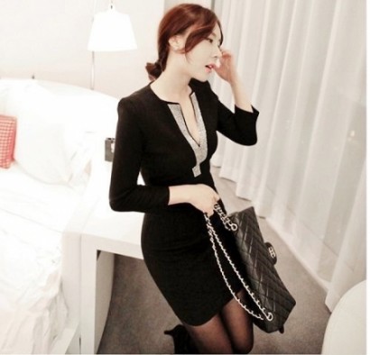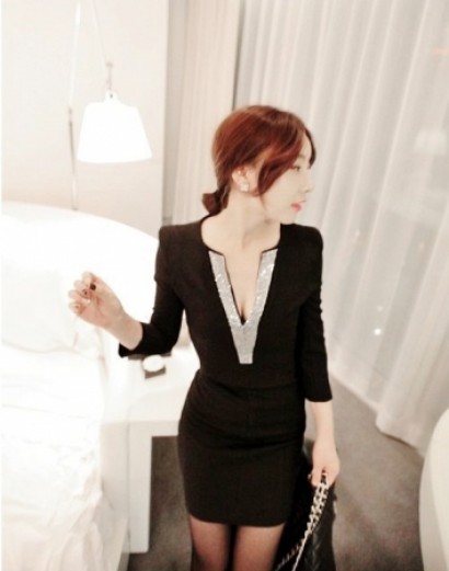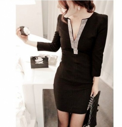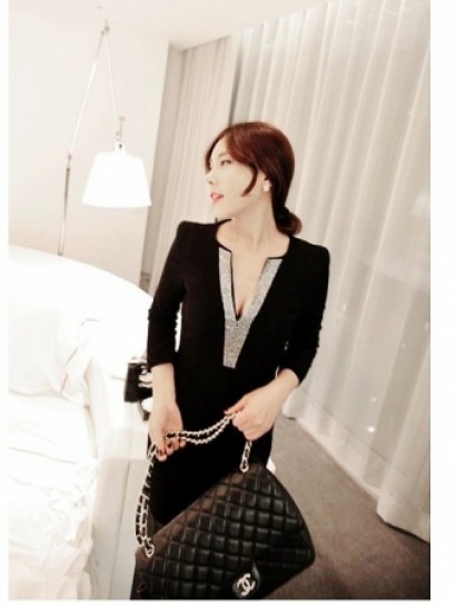 • 燙鑽V領長袖連衣裙SL5044/14