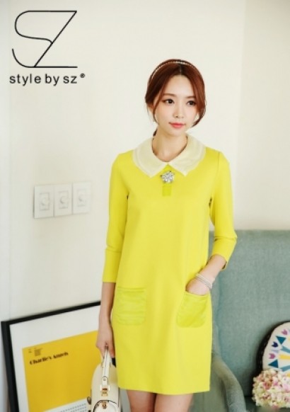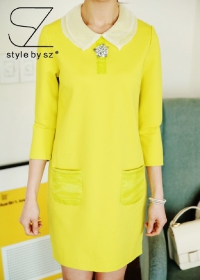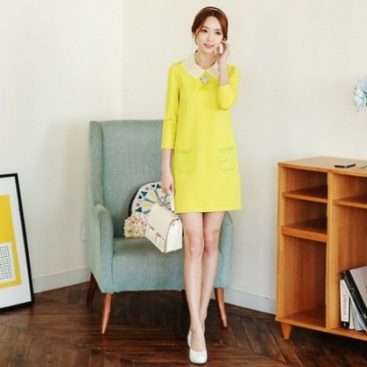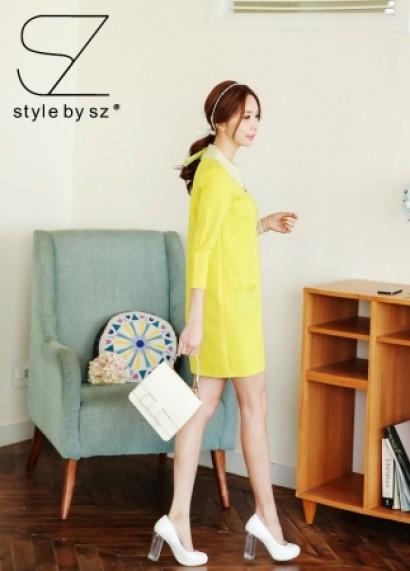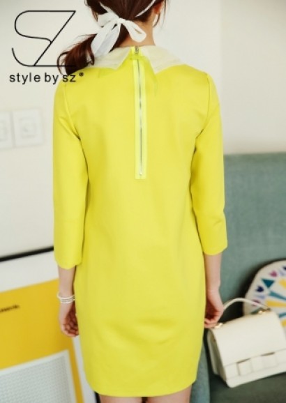 雙層彼得潘領七分袖連衣裙K-70...