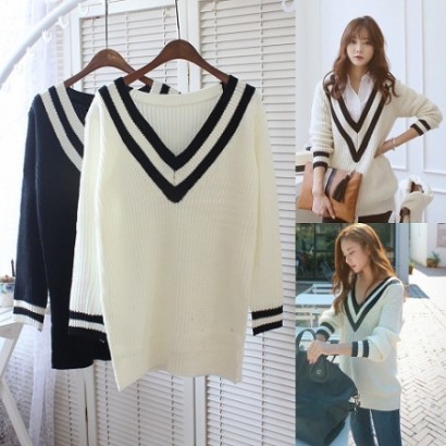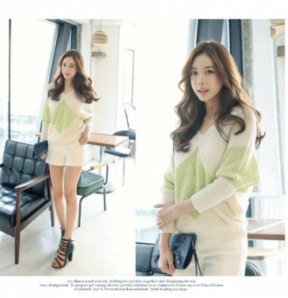 韓國秋冬-幾合菱格V領毛衣