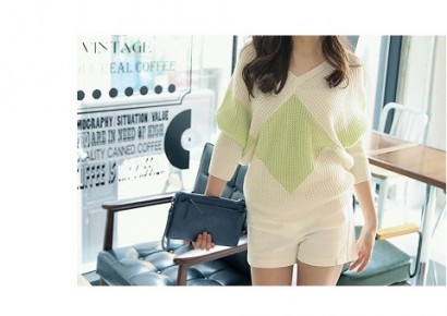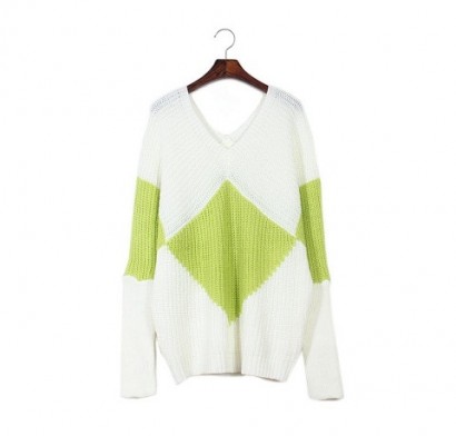 幾合菱格V領毛衣T-L91066