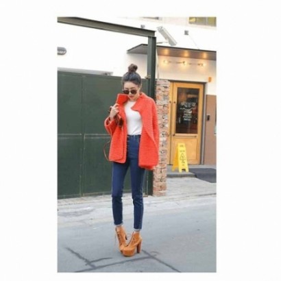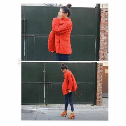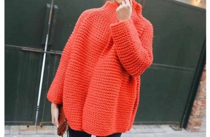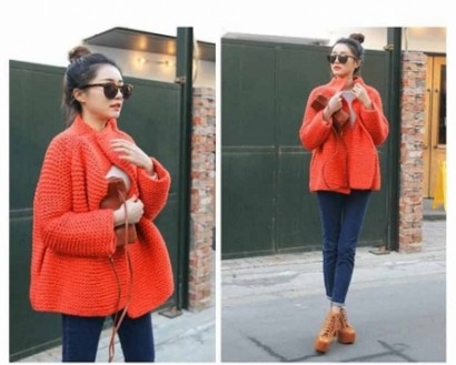 斗蓬粗針棒立領毛衣開衫J821