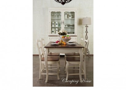 南法鄉村仿舊原木面+白桌腳長...