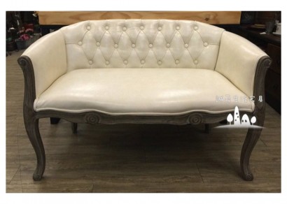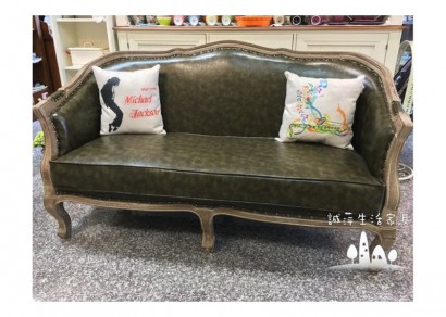 法式鄉村復古雙人皮革沙發