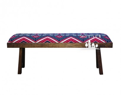 KD海軍紅色芒果木&織物長凳