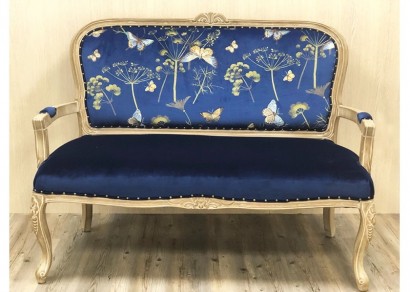 經典雙人沙發-藍底蝴蝶