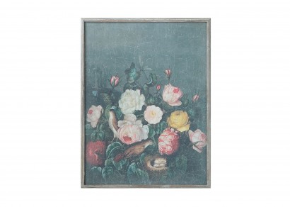 復古木框花卉圖案掛畫
