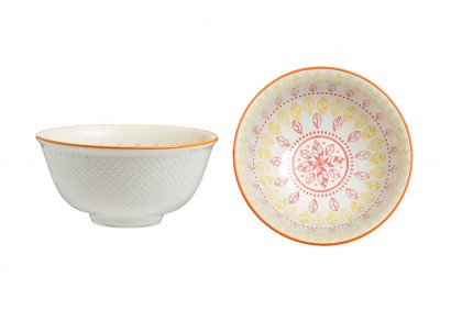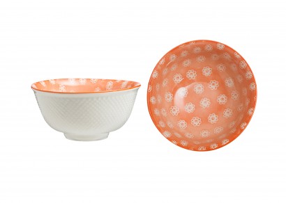 花朵圖案陶瓷碗(橙色)