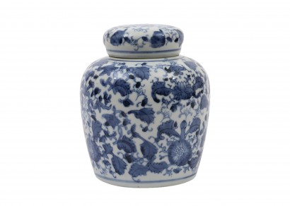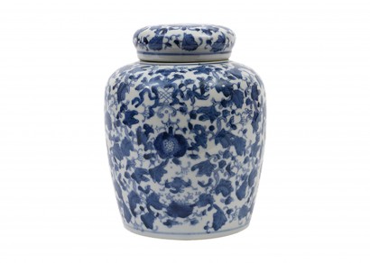 青花圖案裝飾含蓋儲物罐-小號