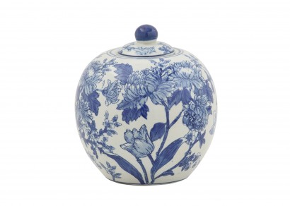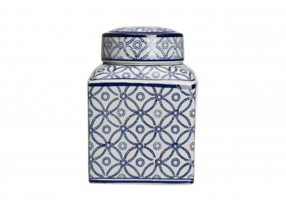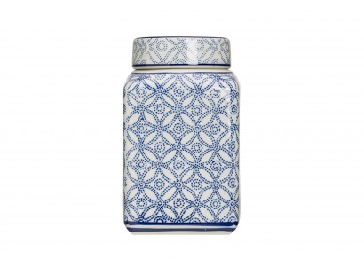 藍白圖案陶瓷裝飾置物罐-中號
