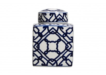 藍白圖案陶瓷裝飾置物罐-小號