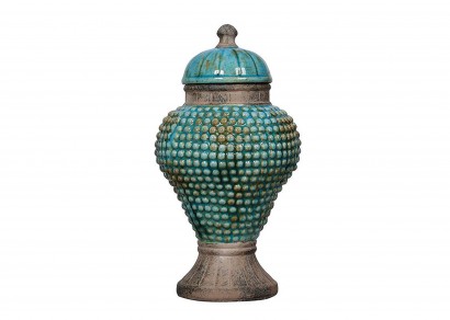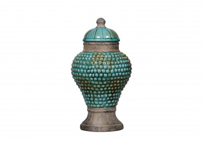 陶制含蓋裂釉裝飾罐(藍色)-大號