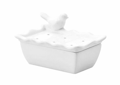 白色小鳥陶瓷肥皂盒