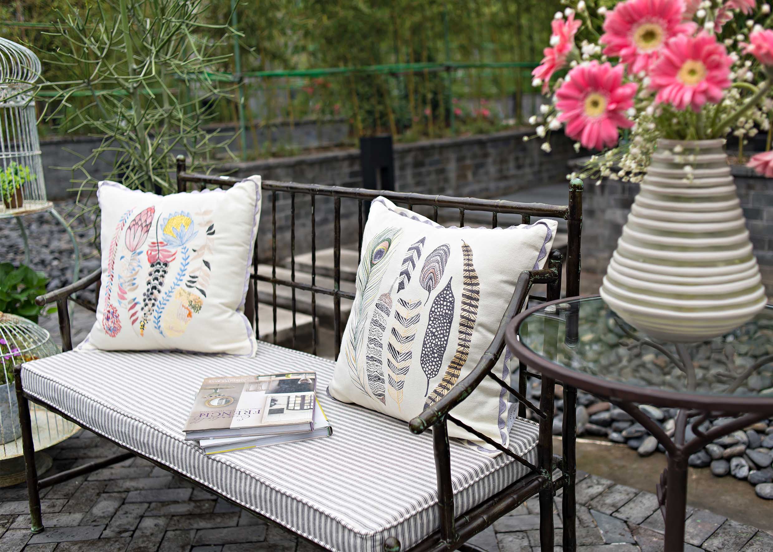 羽毛圖案刺繡抱枕-兩款