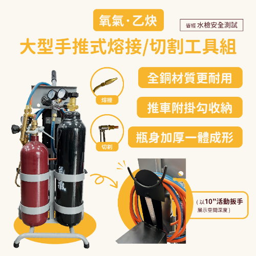 瀚弘鋼瓶小棧大型手推式乙炔氧氣熔接工具組 (6.7L氧氣鋼瓶配5L乙炔鋼瓶)