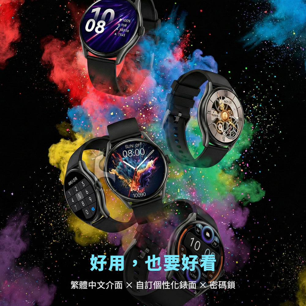 包裝內容:手錶*1、黑色錶帶*1、磁吸充電線*1、說明書*1